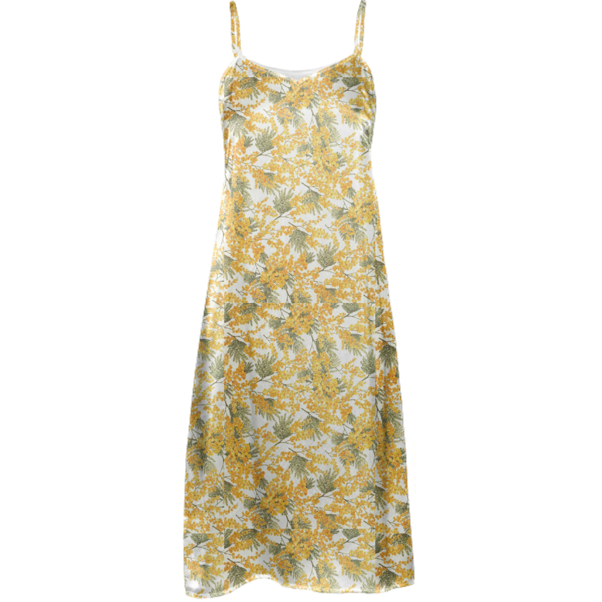 Loose flowy slip dress with adjustable spaghetti straps and 4 inch side slits.