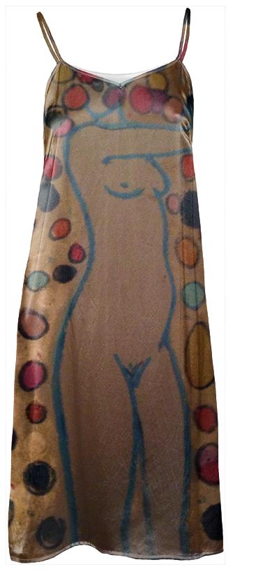 Loose flowy slip dress with adjustable spaghetti straps and 4 inch side slits.