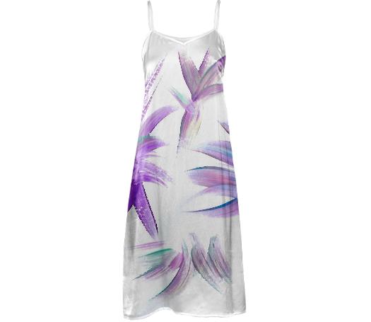 Loose flowy slip dress with adjustable spaghetti straps and 4 inch side slits.