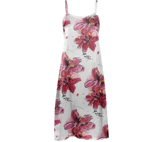 Loose flowy slip dress with adjustable spaghetti straps and 4 inch side slits.