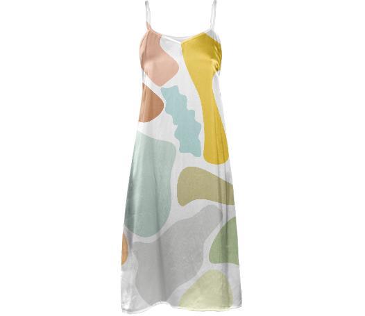 Loose flowy slip dress with adjustable spaghetti straps and 4 inch side slits.