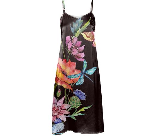 Loose flowy slip dress with adjustable spaghetti straps and 4 inch side slits.