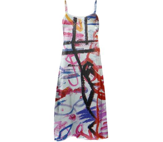 Loose flowy slip dress with adjustable spaghetti straps and 4 inch side slits.