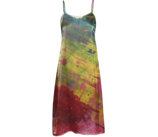Loose flowy slip dress with adjustable spaghetti straps and 4 inch side slits.