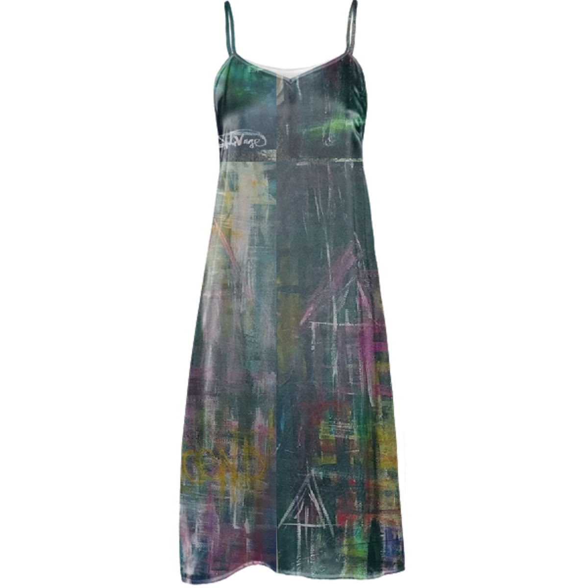 Loose flowy slip dress with adjustable spaghetti straps and 4 inch side slits.