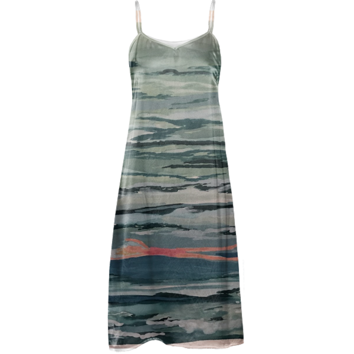 Loose flowy slip dress with adjustable spaghetti straps and 4 inch side slits.