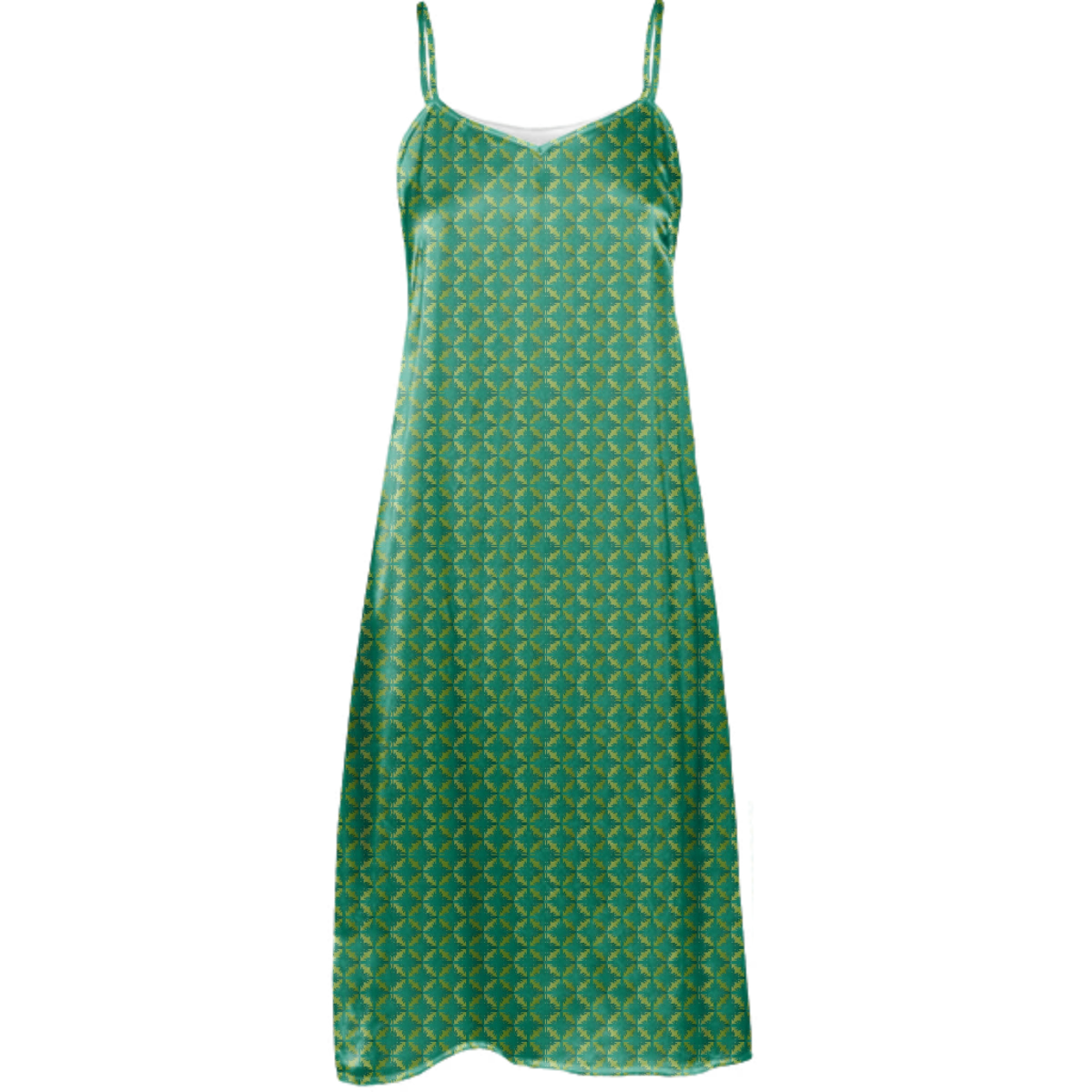 Loose flowy slip dress with adjustable spaghetti straps and 4 inch side slits.