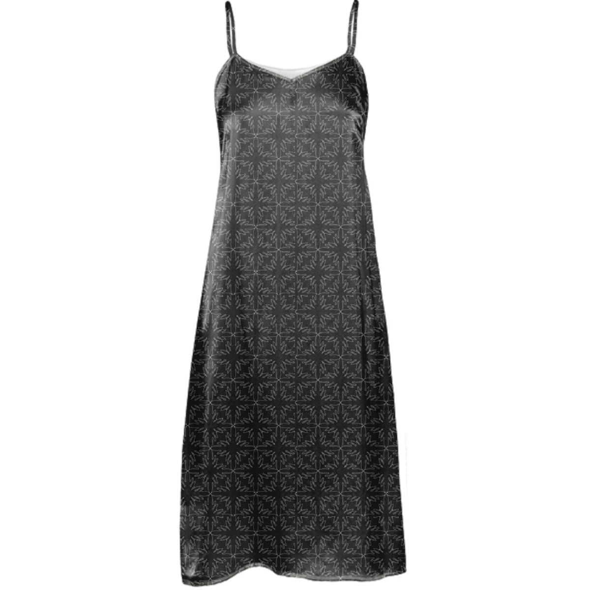 Loose flowy slip dress with adjustable spaghetti straps and 4 inch side slits.
