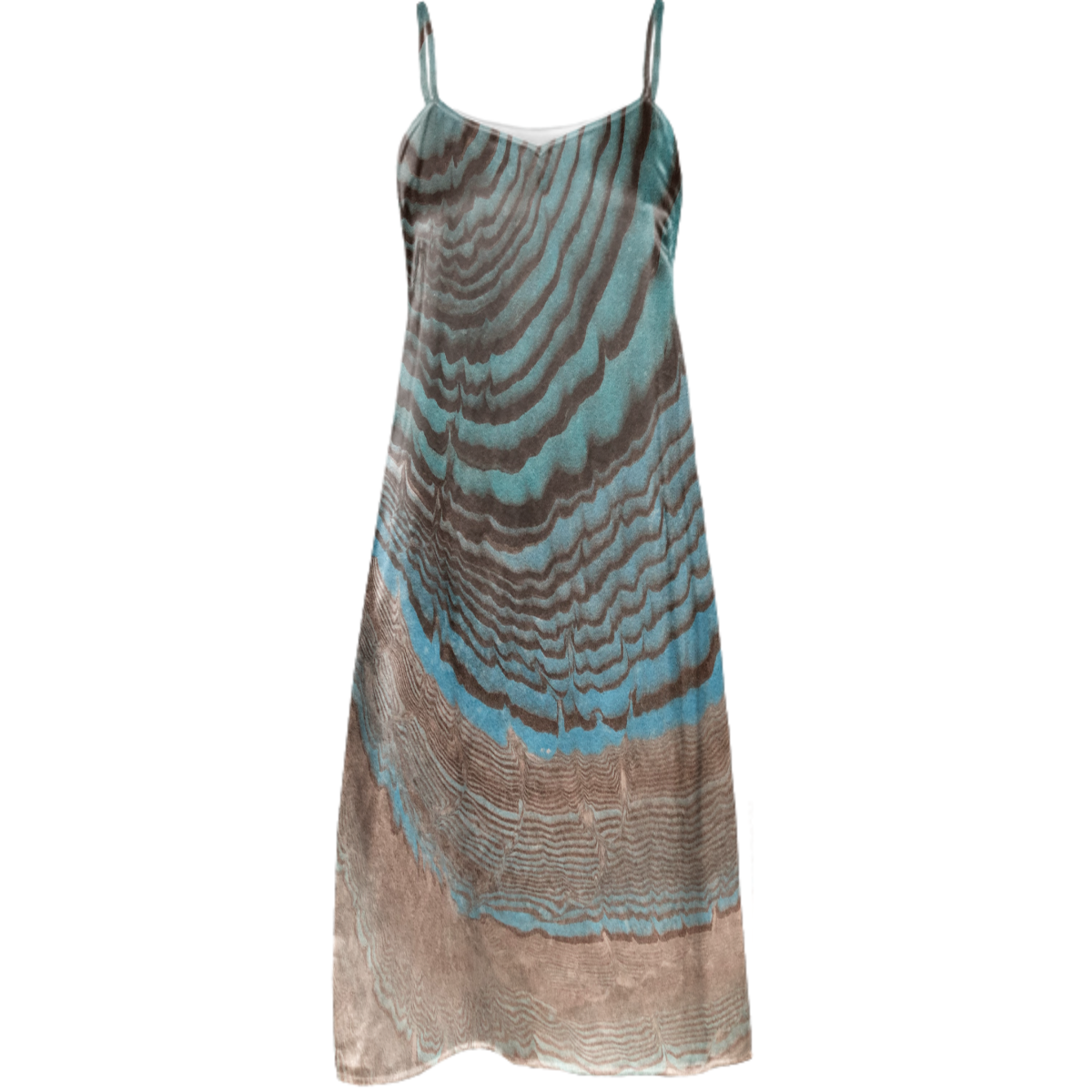 Loose flowy slip dress with adjustable spaghetti straps and 4 inch side slits.