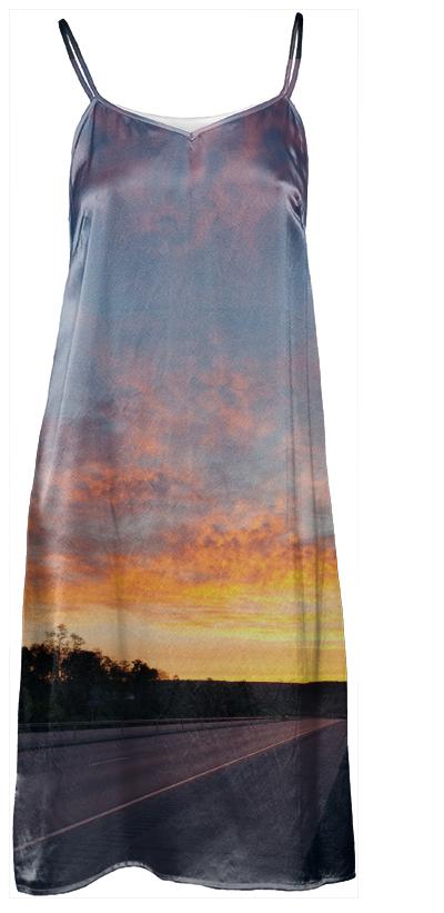 Loose flowy slip dress with adjustable spaghetti straps and 4 inch side slits.
