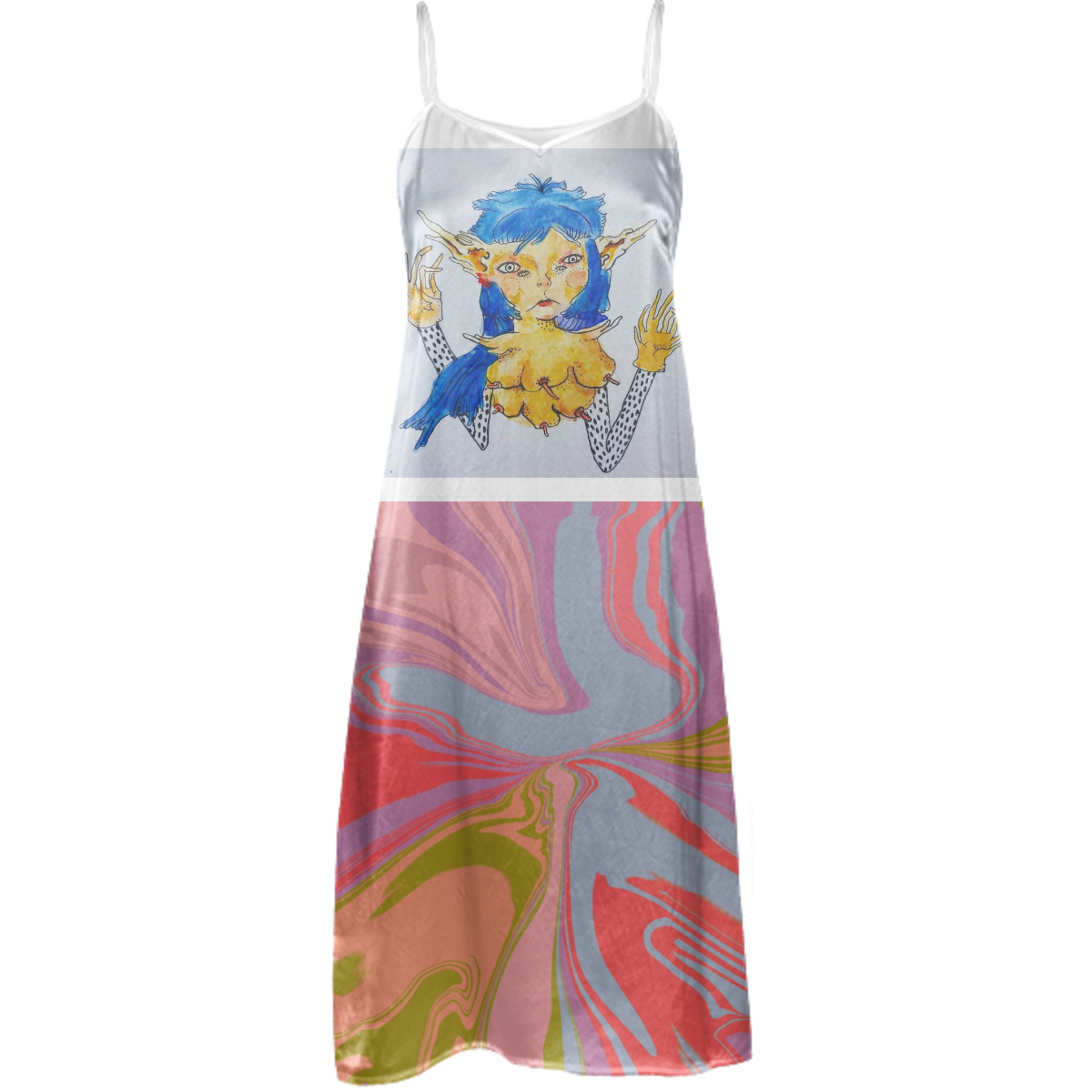 Loose flowy slip dress with adjustable spaghetti straps and 4 inch side slits.
