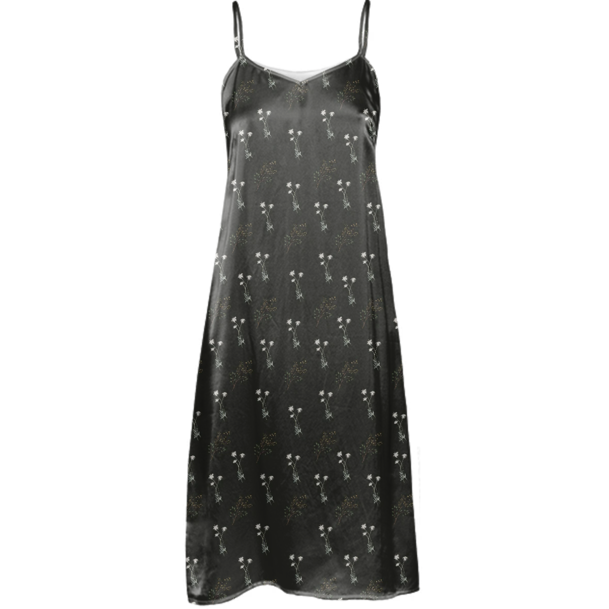 Loose flowy slip dress with adjustable spaghetti straps and 4 inch side slits.