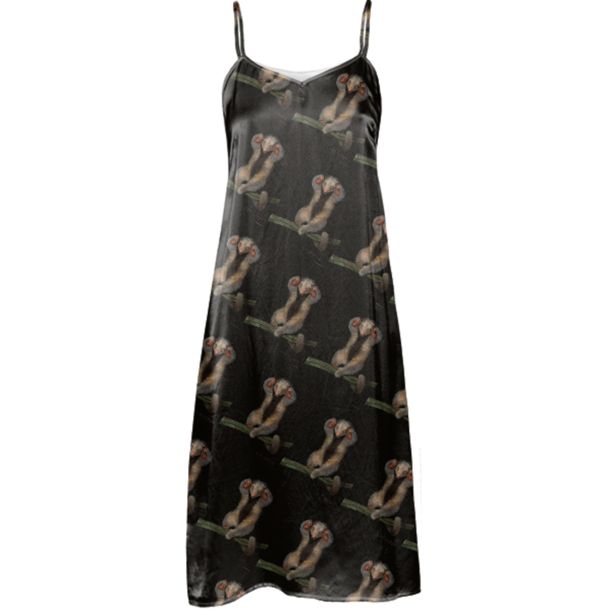 Loose flowy slip dress with adjustable spaghetti straps and 4 inch side slits.