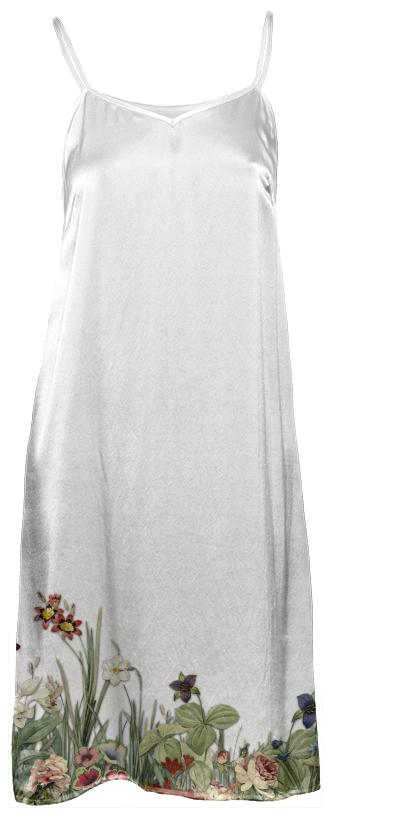 Vintage Botanical Garden Flowers Boarder Slip Dress