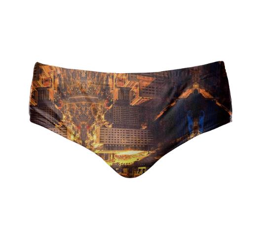 Classic speedo swim briefs with elastic waistband. The uploaded file will be printed on the entire front and be mirrored on the back. Because of our cut and sew process some print elements on pockets seams and sleeves might not match up. For best results please upload a PNG or JPG with RGB color profile and dimensions of at least 35 inches width by 20 inches length. DPI can be as low as 72. Since every piece is custom made, it may take 2-4 weeks for delivery. Made in our studio (Shanghai).