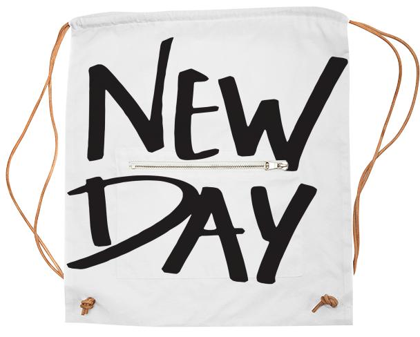 Drawstring sports bag with outside zip up pocket and black or white drawstring straps.