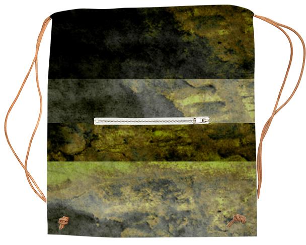 Drawstring sports bag with outside zip up pocket and black or white drawstring straps.