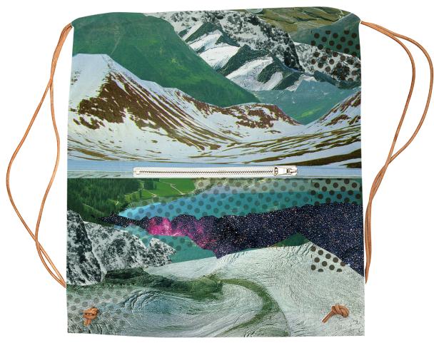 Drawstring sports bag with outside zip up pocket and black or white drawstring straps.