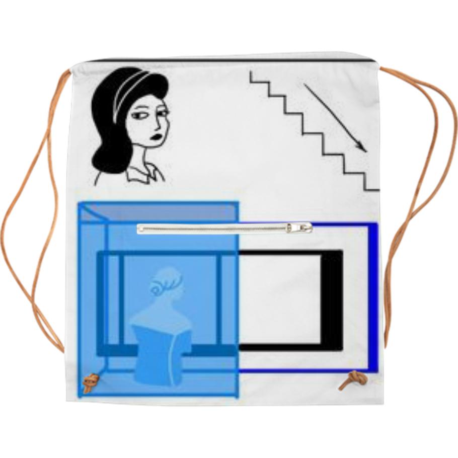 Drawstring sports bag with outside zip up pocket and black or white drawstring straps.