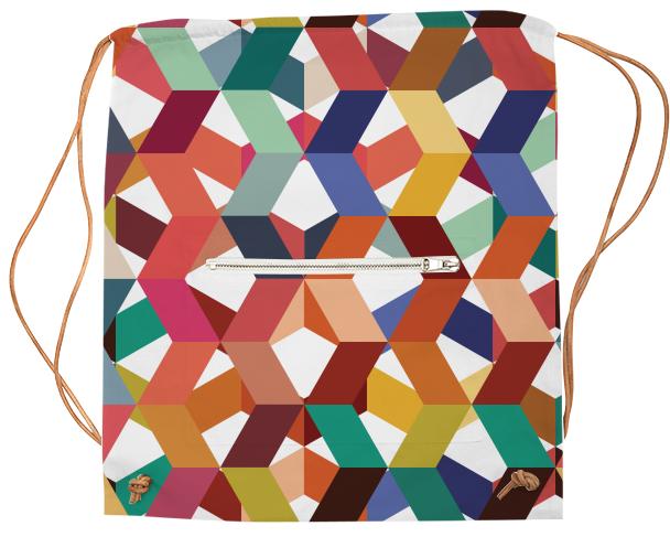 Drawstring sports bag with outside zip up pocket and black or white drawstring straps.