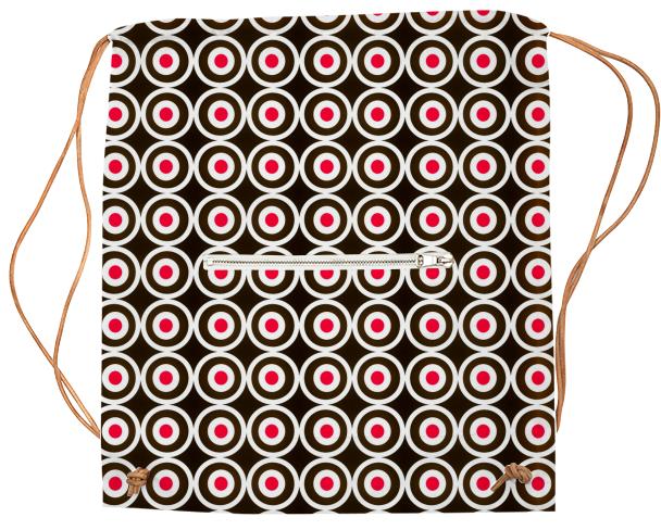 Drawstring sports bag with outside zip up pocket and black or white drawstring straps.