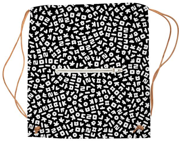 Drawstring sports bag with outside zip up pocket and black or white drawstring straps.