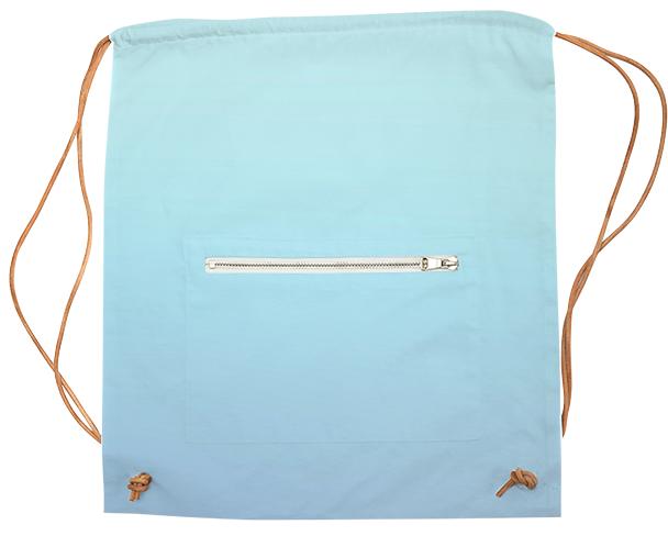 Drawstring sports bag with outside zip up pocket and black or white drawstring straps.
