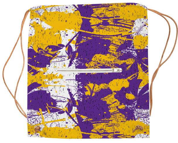 Drawstring sports bag with outside zip up pocket and black or white drawstring straps.