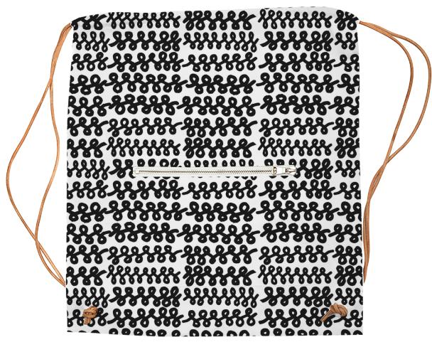 Drawstring sports bag with outside zip up pocket and black or white drawstring straps.