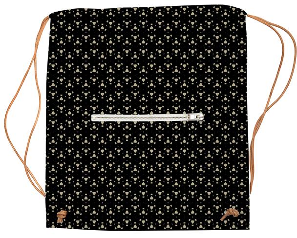 Drawstring sports bag with outside zip up pocket and black or white drawstring straps.