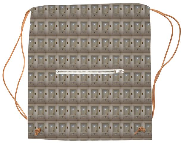 Drawstring sports bag with outside zip up pocket and black or white drawstring straps.