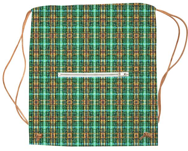 Drawstring sports bag with outside zip up pocket and black or white drawstring straps.