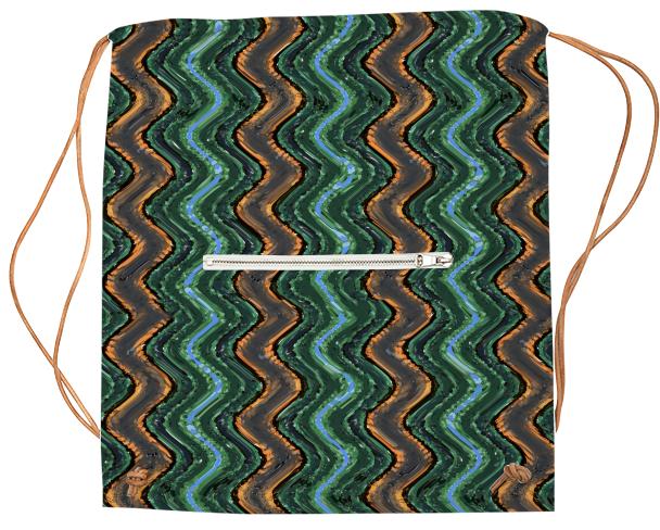 Drawstring sports bag with outside zip up pocket and black or white drawstring straps.