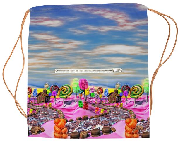 Drawstring sports bag with outside zip up pocket and black or white drawstring straps.