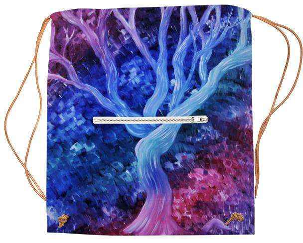 Drawstring sports bag with outside zip up pocket and black or white drawstring straps.
