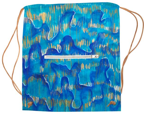 Drawstring sports bag with outside zip up pocket and black or white drawstring straps.