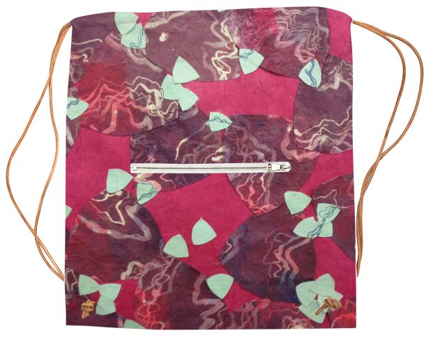 Drawstring sports bag with outside zip up pocket and black or white drawstring straps.
