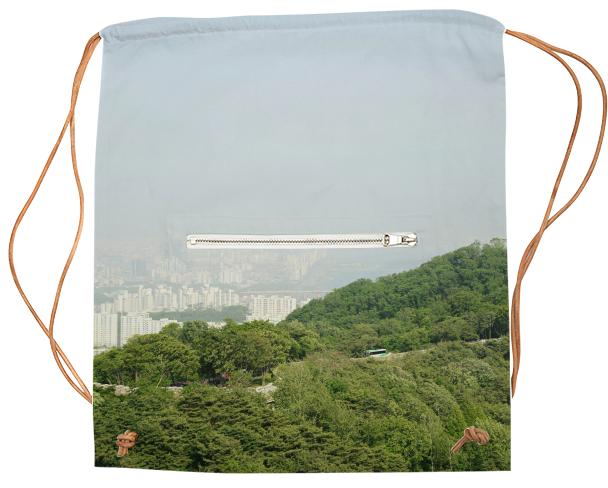 Drawstring sports bag with outside zip up pocket and black or white drawstring straps.