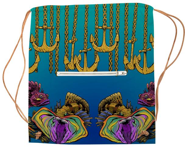 Drawstring sports bag with outside zip up pocket and black or white drawstring straps.