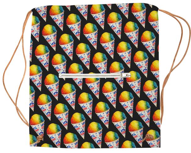 Drawstring sports bag with outside zip up pocket and black or white drawstring straps.