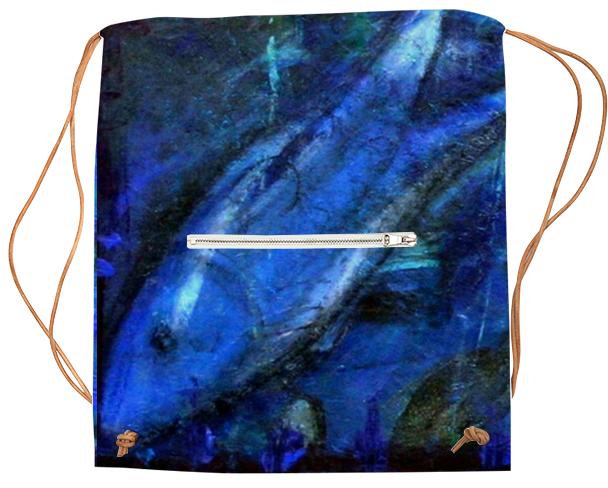 Drawstring sports bag with outside zip up pocket and black or white drawstring straps.