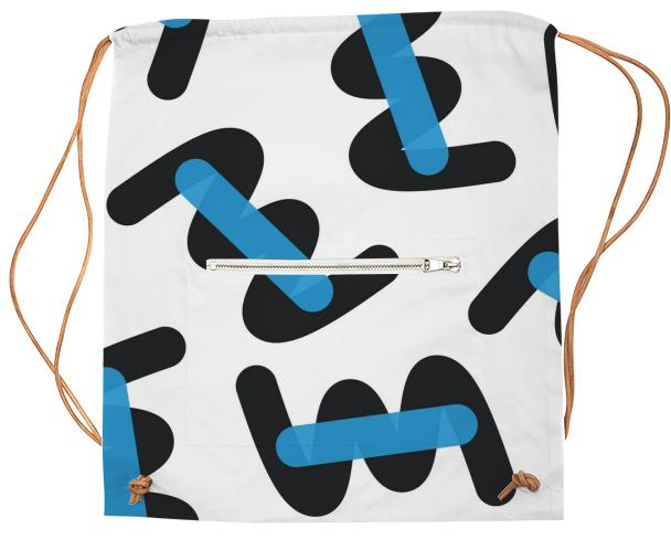 Drawstring sports bag with outside zip up pocket and black or white drawstring straps.