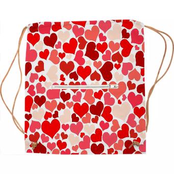 Drawstring sports bag with outside zip up pocket and black or white drawstring straps.