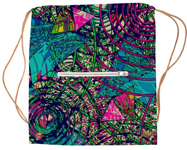 Drawstring sports bag with outside zip up pocket and black or white drawstring straps.