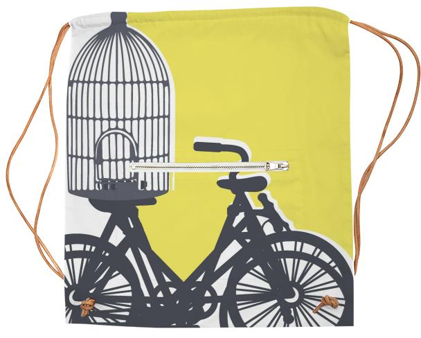 Drawstring sports bag with outside zip up pocket and black or white drawstring straps.