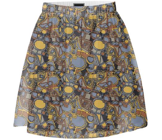 Basic short a-line skirt with a nice drape elastic waistband and side seam pockets.