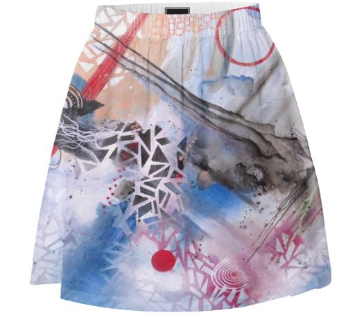 Basic short a-line skirt with a nice drape elastic waistband and side seam pockets.
