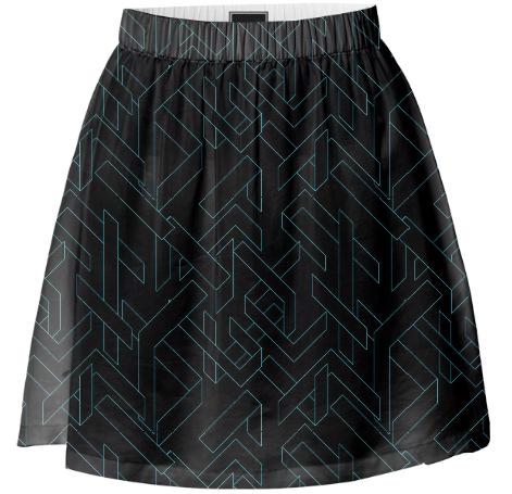 Basic short a-line skirt with a nice drape elastic waistband and side seam pockets.