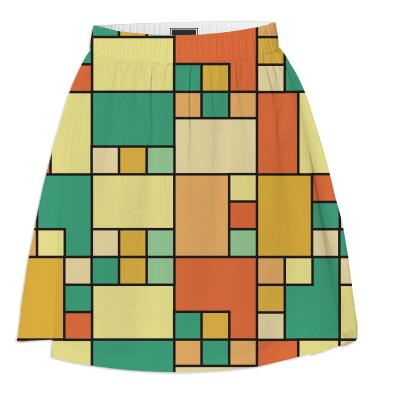 Basic short a-line skirt with a nice drape elastic waistband and side seam pockets.