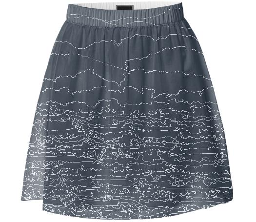 Basic short a-line skirt with a nice drape elastic waistband and side seam pockets.